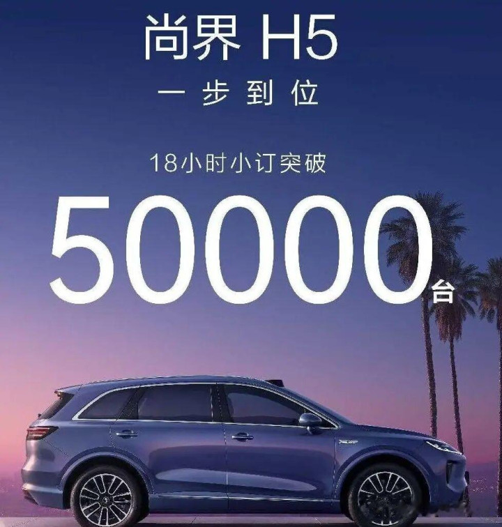 预售开启后,一小时订单突破2.5万台,十八小时突破5万台。尚界H5也成为鸿蒙智行家族中最快实现“爆款”的车型。
